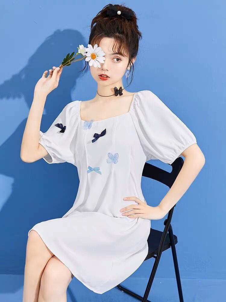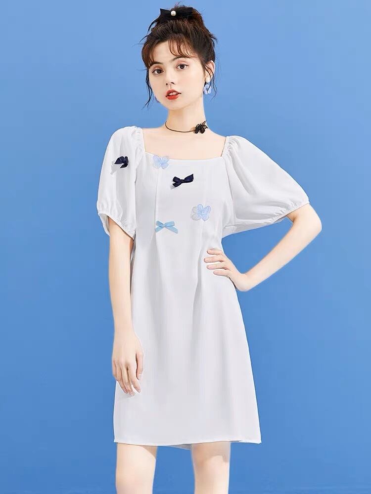スクエアネックリボン膝丈ワンピース G105CON0053