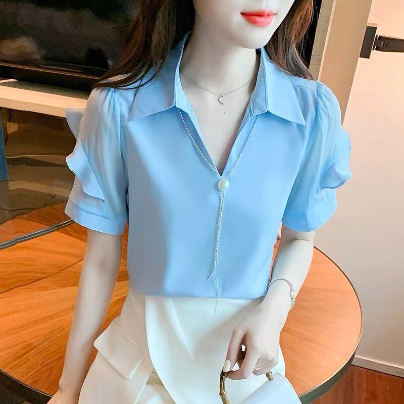Vネック肩フリルトップス G105CT0027