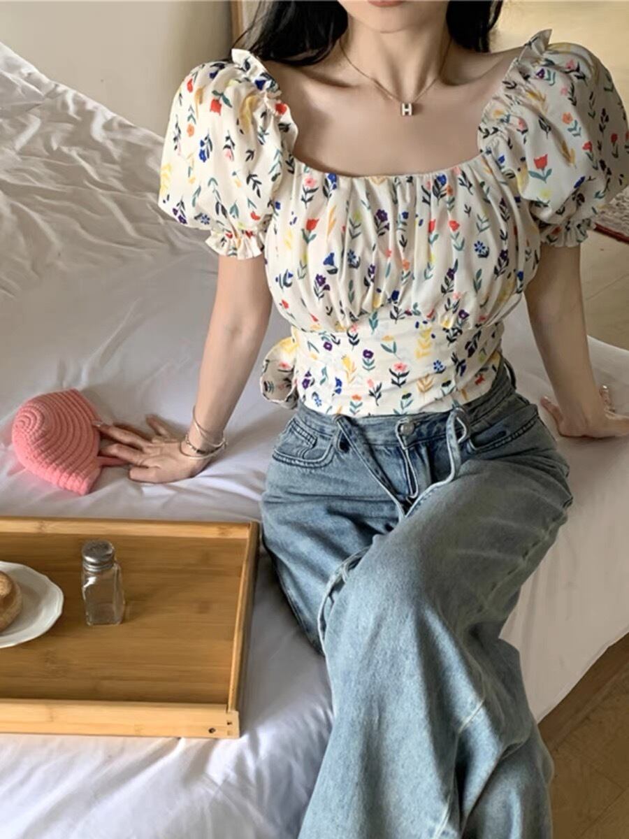 バックリボン花柄トップス G105CT0031