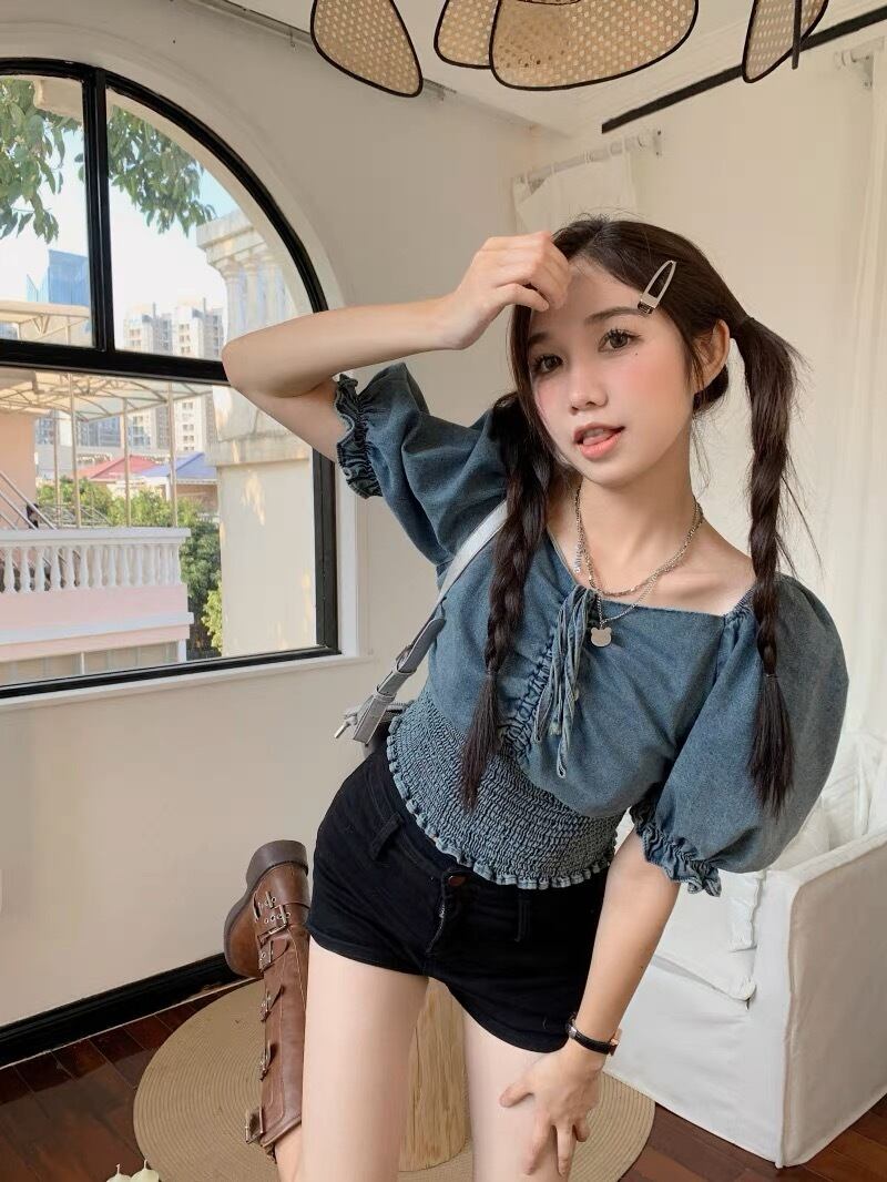 オフショルダーデニムトップス G105CT0034