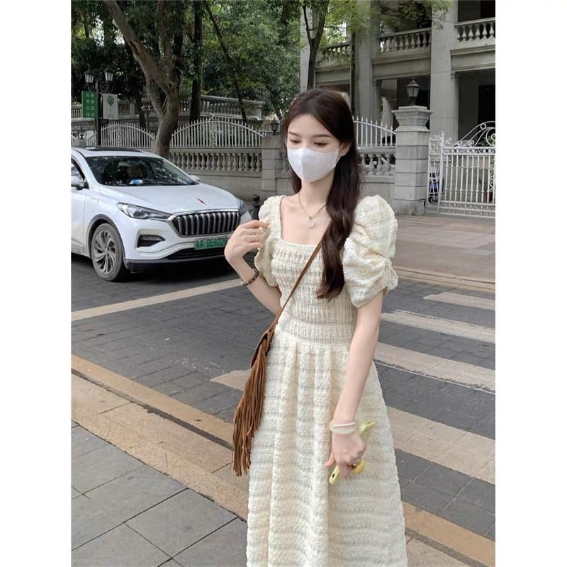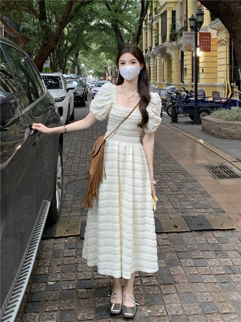 スクエアネックがお洒落な清楚系のロング丈ワンピースです。