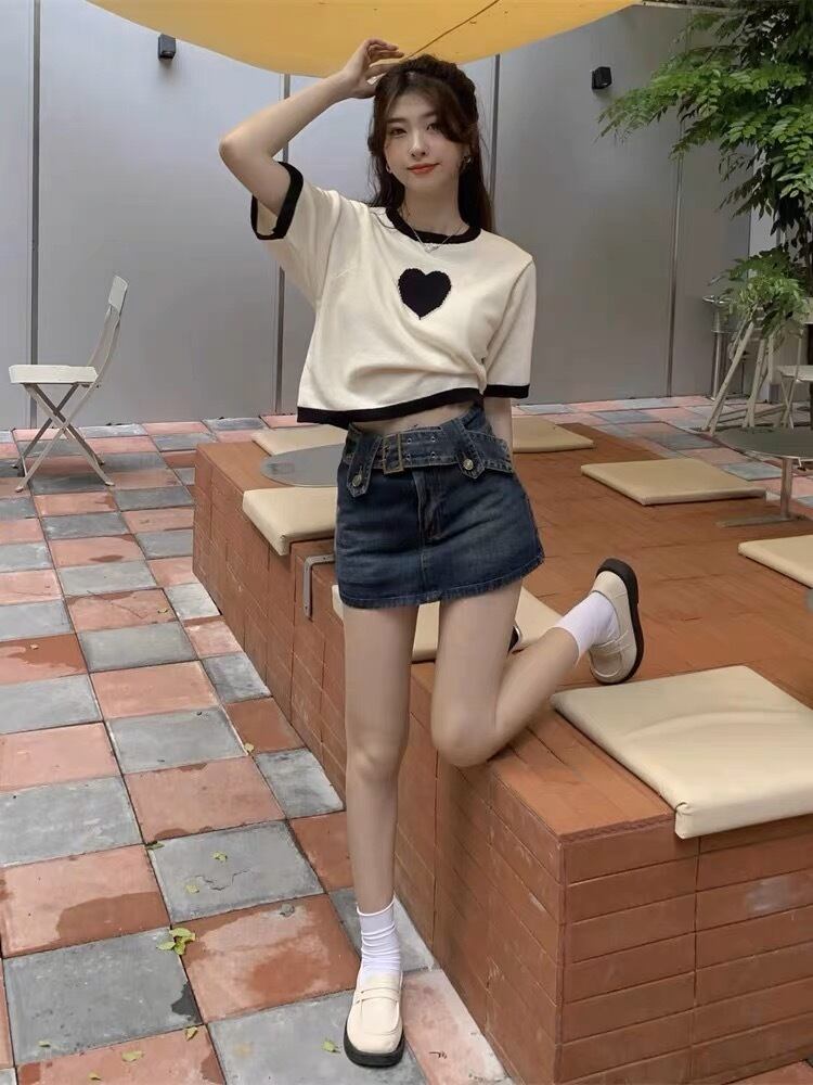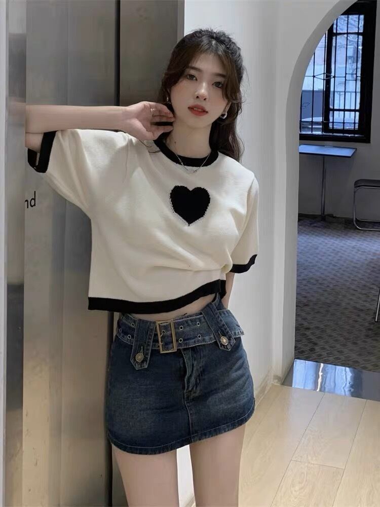 バイカラーハート柄トップス G105CT0057