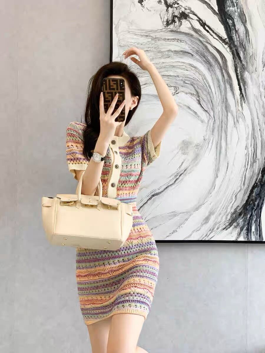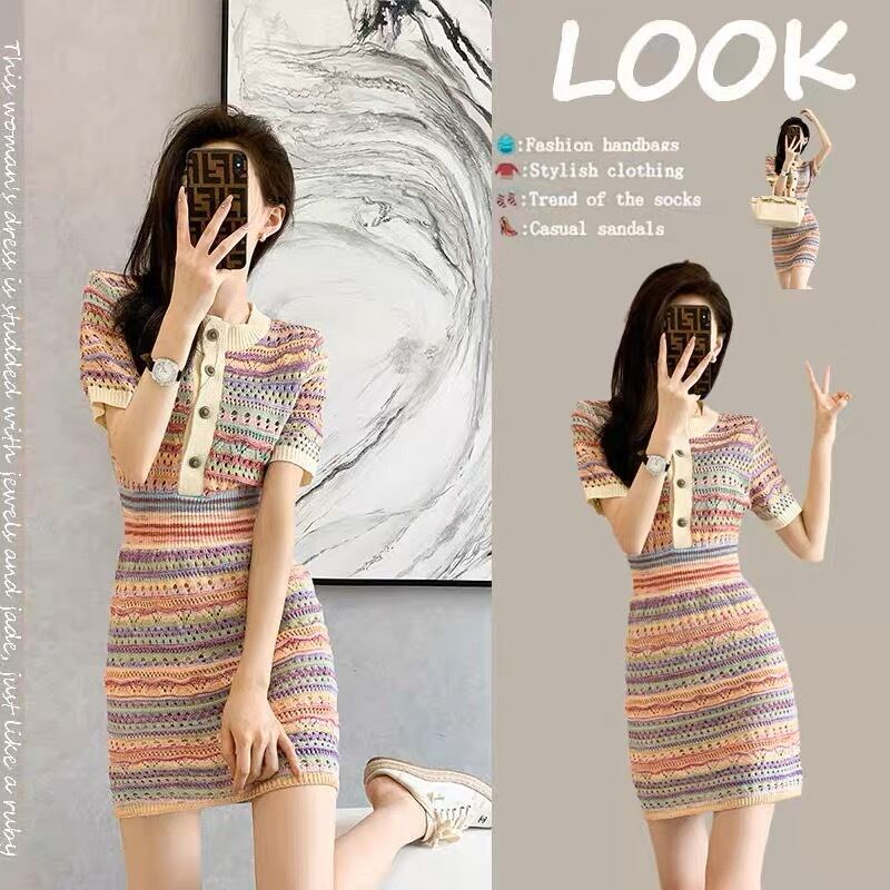マルチボーダーミニ丈ニットワンピース G105CON0086