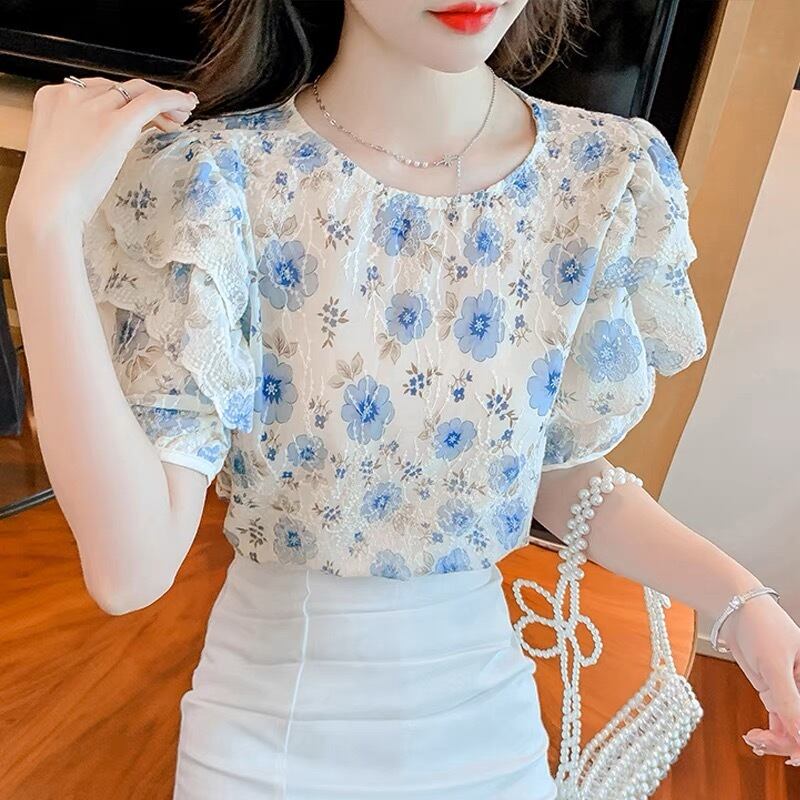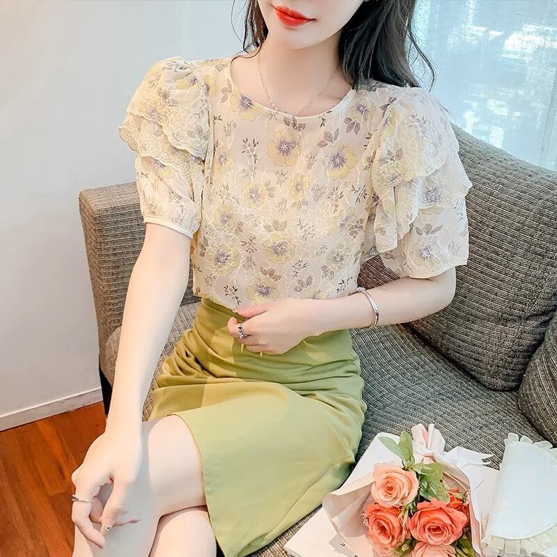 肩フリル花柄トップス G105CT0061