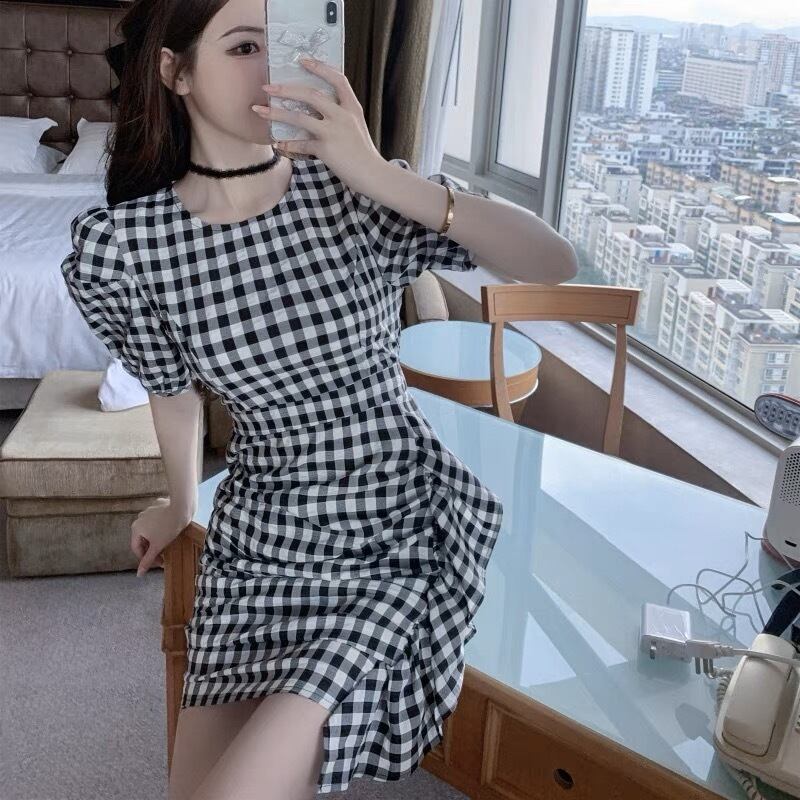 チェック柄が可愛いミニ丈ワンピースです。
